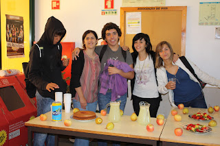 Na segunda-feira, dia 15, os alunos tiveram um lanche matinal muito mais saudável e energético: sumo de limão, maçã ou pêra e bolo de beterraba ...hum! ... mas o melhor... foram as espetadas de fruta! Que delícia!
